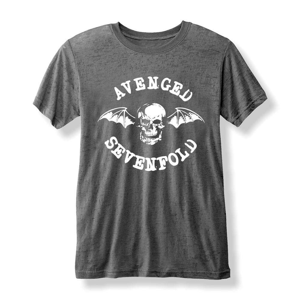 An official licensed Avenged Sevenfold Unisex T-Shirt featuring the ‘Deathbat’ design motif.